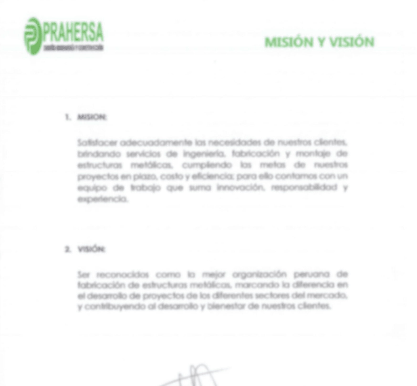 Misión: Somos una empresa 100% peruana que innova, investiga, desarrolla y ejecuta proyectos; garantizando la satisfacción de nuestros clientes y contribuyendo al desarrollo del país.